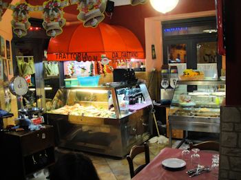 Tonight we really went local, hooking up with our hosts, Marina and Andrea, for dinner at Don Turridu Da Gaetano, one of their favorite neighborhood restaurants, about a 10-minute walk from the apartment. While they have a full menu of choices, the place specializes in seafood. If you didn't know that before you came, you would get a big hint the second you walked through the front door.