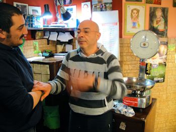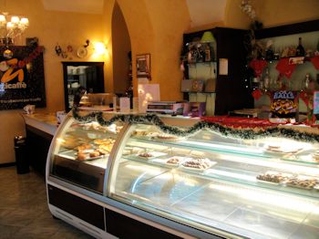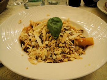 Then it was on to the Secondi (entree course). Margene and I had calamari, Andrea had grilled horse meat(!) and Marina had an interesting roulade-like preparation of ground meat and cheese. I regret that I didn't get more information on this item because it was quite tasty. A couple of bottles of a pleasant (proprietary-labeled) Sicilian white wine and we were happy campers. No way any of us could handle dessert and it was about 10:30 by the time we finished eating, so we called it quits. As in any restaurant experience, it is good to know the owner ... and even better when he is a presence in the dining room, making sure everything is being handled well.