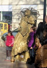 The lower end of La Rambla seems to be the home of the human statues ... at least on sunny days. There were four or five of these characters with elaborate costumes and the uncanny ability to freeze in place for long periods of time (or at least until enough people had tossed a euro or two into the hat and they could stretch!) I guess it's a living, but not a career path. Do small children in Barcelona aspire to a future as a human statue? Christopher Columbus did a great job of staying immobile for long periods on top of his pedestal, too, but then again, he was dead!