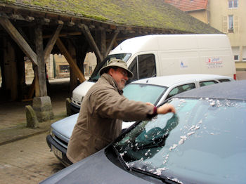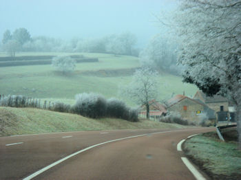 The first task of the day today was to scrape the ice off the windshield. Since the rental company thoughtfully omitted a scraper, I had to make due with the edge of a credit card. The road to Autun was surreal. Everything was covered in frozen fog, giving the feeling of it being snow ... but it wasn't.