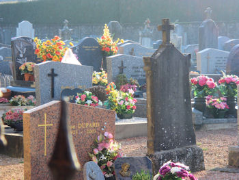 This church in the town of Curgy was built in the 11th century. That makes it about 1000 years old! The cemetary was also interesting, with stones from present day to ... who knows? The carved lettering has weathered off the oldest ones.
