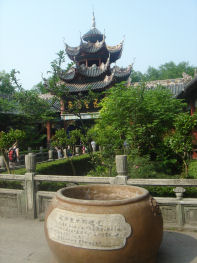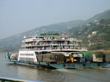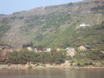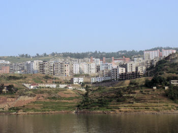 Because the Three Gorges Dam Project has raised the water level behind the dam by some 300 feet or so, the residential part of Fengdu had to be relocated to higher ground. You see new towns like this all along the river ... along with abandoned or soon-to-be-abandoned old homesteads that will be underwater when the final stage of flooding raises the water level another 75 feet.