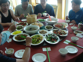 The rest of the day passed quietly as we headed downstream. Among the pursuits: eating (breakfast was buffet, lunch and dinner were typical Chinese), napping, watching the river traffic and research into the nuances of Chinese wine.