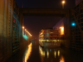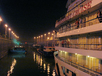 The ship ladder is massive, easily holding six large ships for the four-step ride to the lower level. Each step takes about 30 minutes and Marv and I sat on the foredeck for the entire two hours just fascinated by the process. There is a fifth lock that will not be needed until the water level is raised the remaining 75 feet.