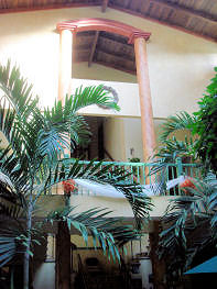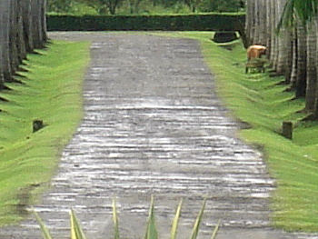 Once again we hit a dirt road, in this case about two miles of rocks from the main highway to the entrance to the hotel. The entry is an impressive drive up an allee of palm trees, but even this picturesque entry is a heavily rutted dirt track. I can understand the condition of the access road since that is a national road, but it makes no sense to me that a place like this wouldn't at least pave the roads on their own property.