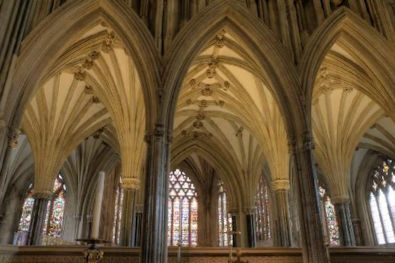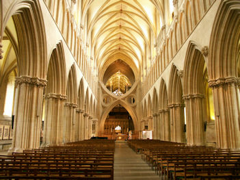 The most notable feature of the Wells Cathedral is the scissors truss in the nave, a clever feature added in the 1200s