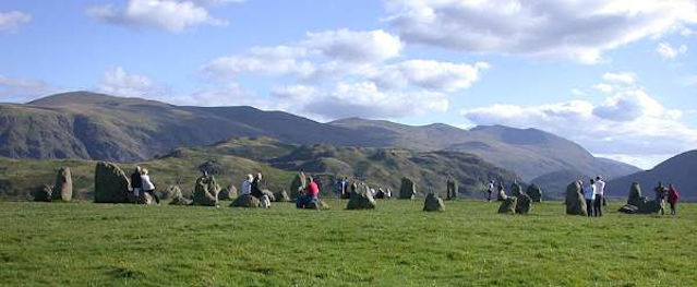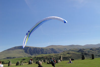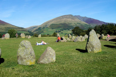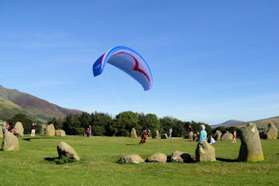 One of the attractions in the Keswick area is the Castlerigg Stone Circle. For some reason, 70% of England's stone circles are here in Cumbria. Castlerigg is one of the best and oldest in Britain, dating back 5000 years. It seemed to be a popular spot for a picnic, although it is also a working sheep meadow so you have to watch where you step! What we didn't notice is the hang gliders taking off from the top of the big peak in the background of the third photo. At least we didn't notice them until one, then two, then a third came in over our heads and two of them landed in the middle of the circle! A great treat for the spectators and, I suspect, a rush for the pilots as well.