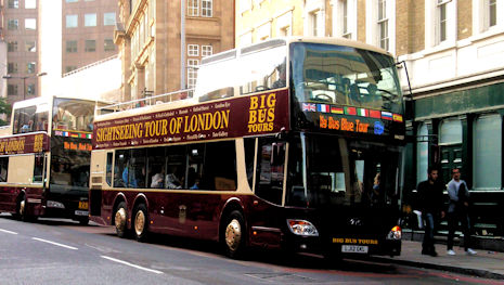 open-topped bus that makes the circuit around all the major sights in London in about three hours. The closest place to pick