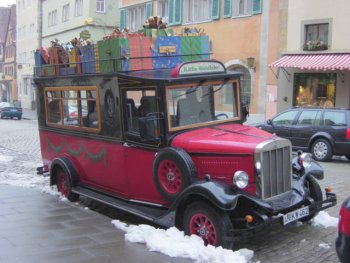 When you can spend time with a cutie like this, who wouldn't want to travel the world? Rothenburg has the reputation as a center for Christmas shops. The Mercedes Benz of Christmas ornaments is Kathe Wohlfahrt who has two shops (and this old bus) in town. Her stuff was pretty but I thought drastically overpriced.