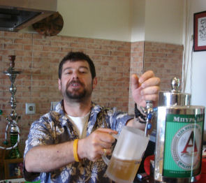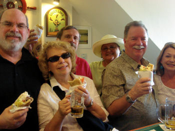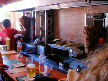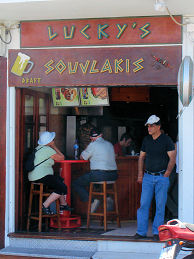 This is a tiny place, open to the street, with a small table in front, two in the back and about ten stools at the bar. He offers several items on his menu but gyros and souvlaki were the only thing I saw sold while we were there. He proudly declares that he has the best food on the island. After deciding to make this our lunch stop, we all firmly agreed. The lunch tab for six of us with a round and a half of beer? About US$30!