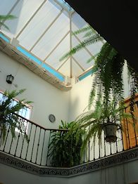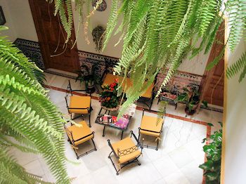 Our home for the next two days is the tiny Pension Cordoba, a dozen tidy rooms in an old house with a showpiece tiled courtyard in the middle. The day was unseasonably hot -- somewhere in the mid-90s -- and the air conditioning in the room was a VERY welcome amenity!