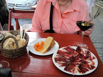 charging!) and settled in for another round of tapas and some excellent Spanish rioja. We had a Spanish omelette, here more