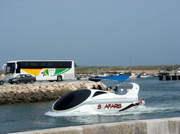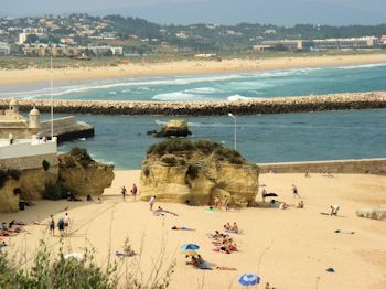 Then we headed down the coast a bit farther to the harbor in Lagos (pronounced La-gosh). As with most of our day trips, we really had no particular idea what we were looking for, we were just looking. Lagos is the party town of the Algarve and the harbor was a nice place just to sit and watch the boats come in and out. As you can see, there was quite a range of watercraft from the traditional to the modern. The one that looks like it dropped out of a Star Trek scene is a glass-bottom hydrofoil. I have NO idea how that would work! It was only as we were leaving that we discovered the old fort at the end of the harbor, but by then we were about done in for the day.