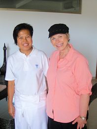 Roy was telling us about how he was pleasantly surprised to get relief from a bad shoulder after a session with a local practitioner of Thai massage. Margene's knee had been giving her some trouble so we arranged an appointment this morning. The spa is part of a new upscale hotel/guest house called Casa Rei das Praias (House of the King of the Beach) and is very soothing and Zen-like. The mistress with the strong hands is WiWi (pronounced in a way that would make American children snicker). However there is no question but what she is a master of her craft. Margene feels much better for the session and we have arranged a return appointment when we leave on Friday morning.