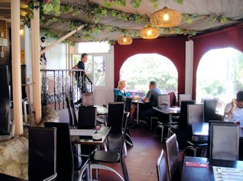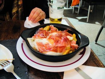 We finally pulled into Nerja around 8:30 and after getting seriously disoriented in the maze of one-way streets, finally found a place to park within a short walk of our hotel ... which is right in the middle of the action. More on that tomorrow. For tonight, all we wanted were some tapas, an adult beverage and a horizontal padded surface ... in about that order. Thanks to long time subscriber John Zesbaugh for recommending Cafe Lizarran for great tapas. I don't know that we would have searched it out without your suggestion, John.