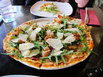 Fortunately, Bryan's restaurant shared a massive free parking lot at the base of the cable car terminal, so the logistics were quite easy. Bryan is a serial entrepreneur with the restaurant, a magazine and several other ventures in operation ... plus he just signed the lease on the site for a second restaurant in Gibraltar, expected to open this fall. Don't let the outward appearance of the building fool you. This is a serious Italian restaurant with a full menu, a wood-fired pizza oven and ingredients imported from Italy. It is the real deal. I was impressed ... all the more so because the GM of the place is Bryan's 22-year old son, Bryan Jr.