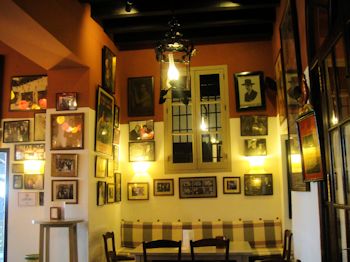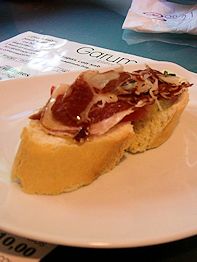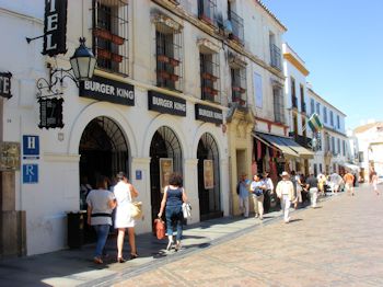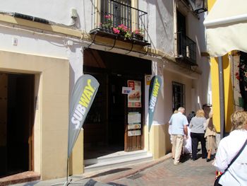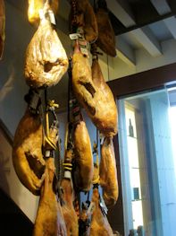 When I first saw Burger King and Subway in the old quarter of town I thought, "There goes the neighborhood." There's something that's just not right about that ... although I suspect that some of the restaurants in town are part of multi-unit chains, just more local ones. THE place to go in Cordoba is Bodegas Campos, one of the oldest and most celebrated operations in town. We dropped in for a drink in their Taberna around 6:30 but the kitchen didn't open until sometime after 8:00 and our stomachs have remained on a US routine so didn't want to eat that late. We briefly considered trying to bring home an Iberian ham but couldn't take the chance that it would be confiscated by US Customs. We'll just have to come back ...