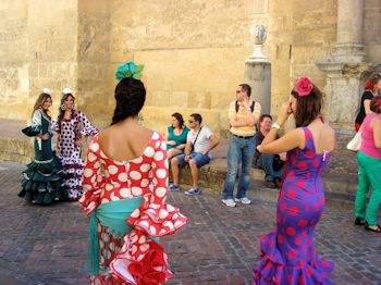 This was pretty much our entry into Cordoba. Turns out this is the week of the Feria (Spring Fair) which is rather like Spring Break for everyone. Lots of party tents, dress-up (more on that in a minute), celebrating and from appearances, serious over-consumption. It looked like a real good time was being had by all.
