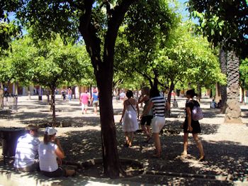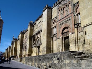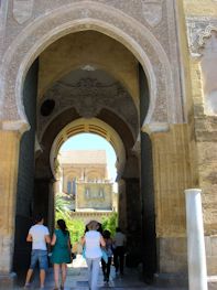 Our hostal is right on the edge of the old quarter of the city so we got out and explored a bit. The arch was (almost) built to give King Philip II a royal welcome, but he arrived before it was finished so the job was canceled! The area is the old Jewish quarter and thrived until the Spanish Inquisition. The narrow winding streets offer a break from the sun (it is hot again!) and will probably get more exploring tomorrow. The big attraction is the Mezquita, a massive former mosque, now with a 16th-century cathedral rising up from the middle of it. This was once the center of Western islam and the heart of a cultural capital that rivaled Baghdad and Istanbul. The tour groups were everywhere and we were simply too tired to try it seeing it today, but it is definitely on the calendar for tomorrow.