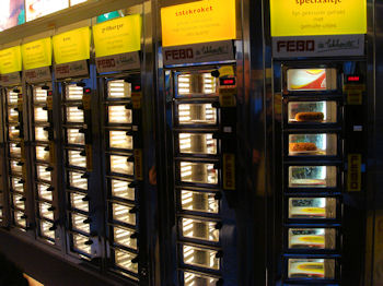 I found food prices generally quite high and since I wasn't all that hungry anyway, I opted for a small burger at Febo, essentially a sandwich shop but with a decent selection of hot sandwiches as well. They had a second section downstairs where I had to go (and pay separately) to get an order of frites (french fries) to take back to Margene. The norm here (and in Belgium) is to serve them with mayonnaise! They also had an automat section, a concept I haven't seen for years. Perhaps its making a comeback?