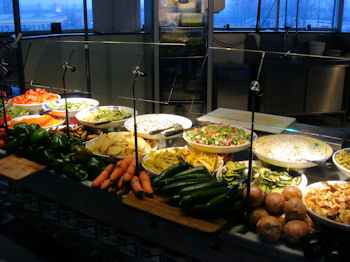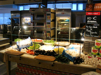 Our hotel is at an exit off the A4 Motorway a short distance from Amsterdam's Schiphol Airport. There is also a dining complex at this exit built, in the best European space-conserving fashion, spanning the highway. There is the ubiquitous KFC and Burger King, but also a Sushi Bar, fairly upscale BBQ joint, a sandwich shop, a US diner-like restaurant ... and The Place. The Place is essentially a cafeteria, but done in a very open market style with a lot of attention to presentation and fresh preparation. I was impressed.