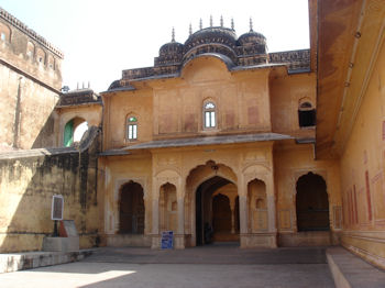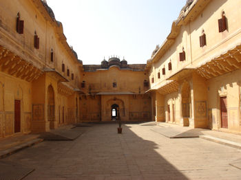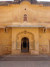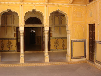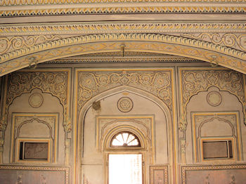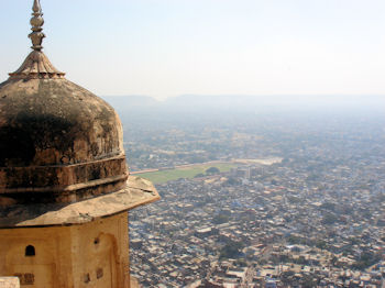 High on a hilltop above Jaipur is Jaigarh (Tiger Fort). Like most we have seen thus far, it had not only a military purpose but was the site of a royal residence. (I suppose the Maharajas liked the idea of a little household security as much as we do!) The palace in Tiger Fort had nine quite ornate self-contained royal apartments ... and a damn fine view of Jaipur!