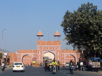 The horse was prancing down the main street, all decked out for a wedding. There were camels and elephants in the streets as well but I didn't get any good pictures since we were in a car. Finally, the Palace of the Winds has become a tourist magnet. Certainly it gets a lot of photo play. While it is quite spectacular to see, it is really just a very ornate facade added over a much less interesting building -- hardly a palace at all, really, but sure looks like one. This does make a statement about what sort of drawing power you can create if you really go over the top.