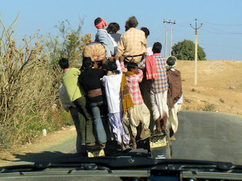For the rest of our trip we will be traveling in this new Renault sedan. Very comfortable and quite roomy. Of course, we could go native and offer a ride to a few of the locals. Surely we must have room for them -- we counted 23 people in this jeep (including the guy sitting on the hood) ... but we might have missed a few!