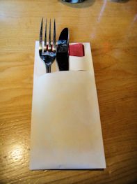 their alternative to the ubiquitous silverware roll-up. Those always look tacky to me, especially when using paper napkins