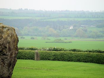 see another small mound in the neighboring field. Even the standing stones positioned around the mound are massive.
