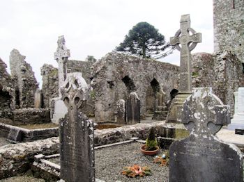 On the way back to Trim, we took a quick look at the Hill of Slane, site where St. Patrick publicly challenged Pagan law back in 433 AD by lighting a fire on the top of the hill. I won't go into the back story of why that was considered such a radical act, but it did firmly establish the Hill of Slane as an important site. All that's there now, besides grazing cows in a lower pasture, are the ruins of Slane Abbey (circa 1512) and an old cemetery. The oldest date I could read on a stone was 1793 but I'm sure there are others at least 200 years older.