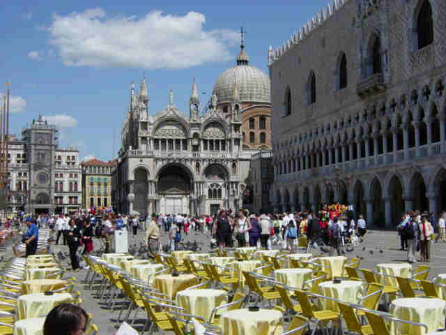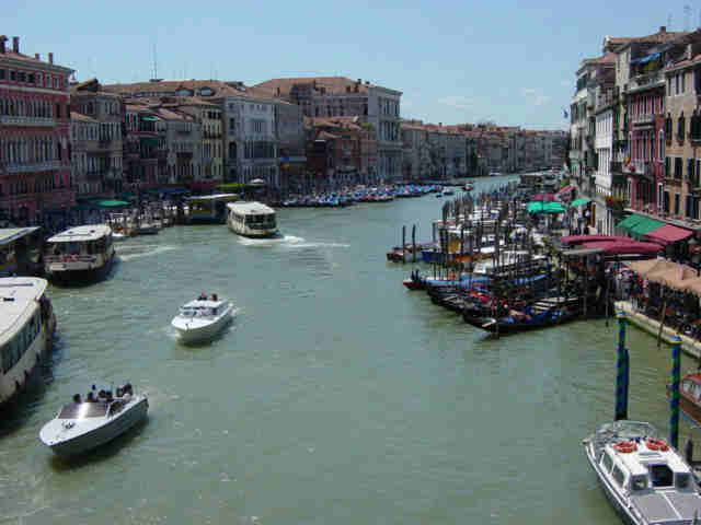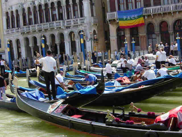 A gondoliers work stoppage blocked the Grand Canal for awhile. This is what it looked like an hour later. Except for the usual tourist route from San Marco to the Rialto bridge, it was surprisingly uncrowded in Venice.