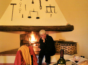 Our apartment, Il Guardia, is build on the ancient foundations of fortified guard tower dating back over a thousand years - hence the name. On our first night here, Pat Gray did her Girl Scout thing and got a fire going to take away some of the unseasonal chill in the air.