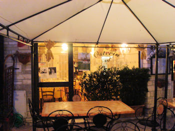 Patrick recommended we eat at the Osteria al Prato ... and he was right -- nothing fancy but great local food at very reasonable prices. We arrived around 7:30 (early for dining in Italy) and it was a good thing we had a reservation. Around 8:00 the whole place suddenly filled up. Restaurants here only figure on one turn a night, so if you come late you might not be seated. There is no concept of turning tables like we see in the US ... but then again, there is also no concept of hurry up and get on to the next thing either. Dinner is the evening's entertainment and it is to be savored. Very civilized. We liked it enough to make a reservation for the whole group for a final meal on Friday night.