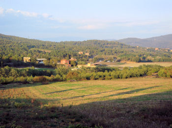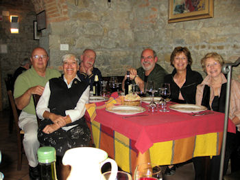 Fall is apparent in the La Selva vineyards where many of the leaves have started to turn. They have already picked the Merlot and are starting on the Cabernet Sauvignon grapes next. I guess the Sangiovese will be last. When we got back to the house from Cortona, the valley was bathed in the golden glow of the setting sun -- such a wonderful quality of light!