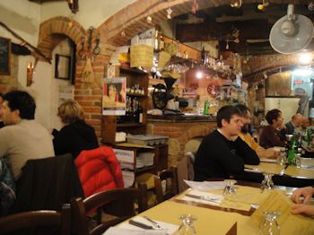 So it was back to Osteria Acquacheta for dinner. Normally you can't get near the place withoug a reservation, but I took a chance that in the off season they might be able to sneak me in if I got there early. They were already nearly filled when I arrived, but Giulio managed to find me a spot at the end of a larger table. (Communal seating, remember?) As it turned out, the party who was to take the rest of the table had not arrived by the time I left.