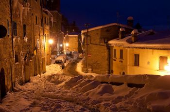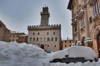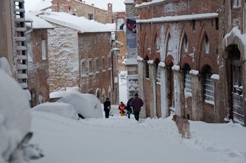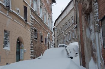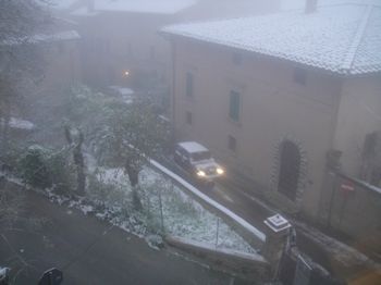 Lest you think that it never snows in central Italy, I offer some of Giacomo's photos from a freak snow storm that hit Montepulciano in February 2012. Apparently something like this happens every five years or so. If you have ever looked at a steep street or driveway and wondered what they do when it snows ...