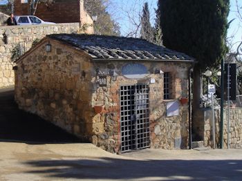 Monticchiello turned out to be this compact walled medieval hill town, a fascinating place just to wander and soak in the ambience while we waited for the Osteria La Porta to open for lunch. As an aside, if you have ever thought it would be cool to own a little bar in Tuscany, the photo on the bottom left is of a very little bar in Tuscany. The whole building is probably 10x12 feet! I think they re-open tomorrow (although I can't imagine why). Looking out from the town, all you see are rolling hills and the shimmering silver leaves of the olive trees. For a small town, I was surprised to see four or five restaurants although only one seemed to be open at the moment. I could almost see myself living here!