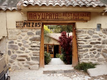 This was not really much of a restaurant day, but I did see a few things in Ollantaytambo that had a culinary overtone. On the left, a local butcher does his work under what must pass for strict sanitary conditions. I think this pig was slaughtered as part of the All Saints Day holiday celebration tomorrow. Even in a little town like Ollantaytambo, pizza seems to be the menu item of choice. Margene's stomach still being a bit tempermental, we did not eat at this place, but it certainly had a good look.