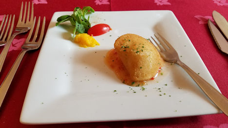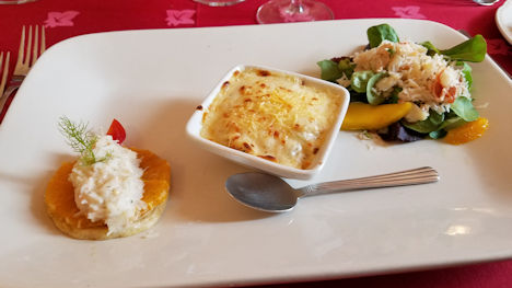amuse bouche. The starter was crab three ways. I had guinea fowl for my main course and ended with a wild berry panna cotta.