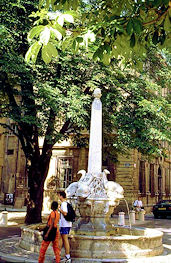 Like most rentals in Europe, the house changes over on Saturdays so we are on our own until then. Our first task after flying all night is to find the Hotel des Quatre Dauphins, the spot we have reserved for our night in Aix-en-Provence. Aix (pronounced like the letter "X") is an old city, actually the first outpost of the Romans back in the day. This means a free-form street plan, narrow lanes in the old town that reflect its age ... and traffic.