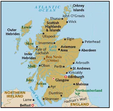 No big deal, right? Things like that can happen even when you are driving in a more familiar car on the more familiar side of a more familiar road. But a few minutes later ... thump, thump, thump ... flat front tire ... and no place in sight to pull off the road to change it. (The Scots are not real big on road shoulders). Eventually I found a spot where I could change the tire. The sidewall was torn, probably from the transition off and back onto the paved surface. The alloy wheel showed the scars of the adventure and my hands were covered in grease.